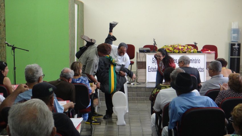 O primeiro dia de seminário contou com apresentação cultural, falas de abertura e debates em torno das reformas da Previdência e Trabalhista. Os aposentados e pensionistas foram recepcionados por uma apresentação do grupo de teatro TV Sindical, que apresentou uma esquete com críticas a Reforma da Previdência. Em seguida, houve uma homenagem a ex-coordenadora do Núcleo, Domícia Calumbi, falecida em 2016, com a entrega de um buquê de flores para seus dois filhos.