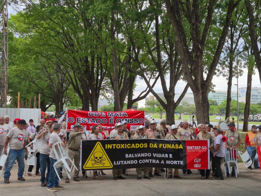 Os servidores realizaram uma caminhada até o Ministério da Saúde em defesa dos trabalhadores que foram intoxicados por substâncias químicas durante as campanhas de combate às endemias, como malária e dengue.