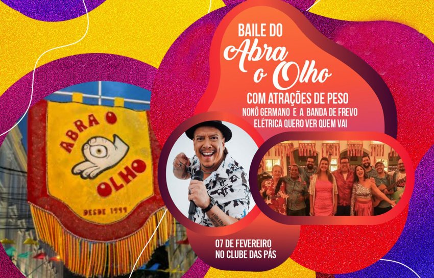 O baile de Carnaval do Bloco Abra o Olho, que acontecerá no próximo dia 7 de fevereiro, no Clube das Pás, em Campo Grande, terá atrações de peso. Além do cantor e compositor Nonô Germano, já anunciado, a festa contará com a apresentação da Banda de Frevo Elétrica Quero Ver Quem Vai.