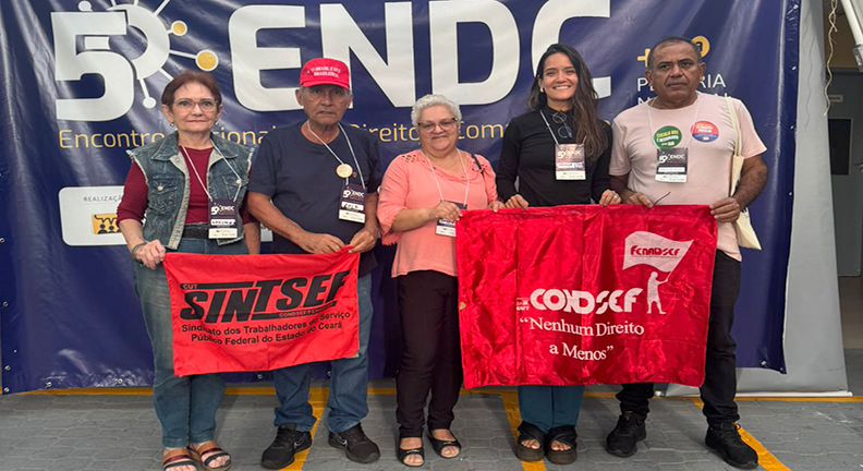 A Condsef/Fenadsef participou dos três dias de debates sobre temas ligados à democratização da comunicação brasileira durante o 5º Encontro Nacional pelo Direito à Comunicação (5º ENDC). O Encontro teve início na última segunda-feira (08) e se estendeu até esta quarta-feira (10), em Fortaleza (CE). Representaram a Confederação as diretoras Mônica Carneiro e Sandra Lúcia Mota e o diretor Fernando Lima.