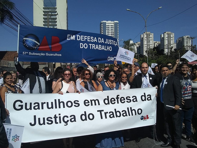 Atos por todo o país nesta segunda-feira (21) marcaram o início de um movimento em defesa da Justiça do Trabalho. Em São Paulo, advogados, magistrados e servidores se reuniram em frente ao Fórum Trabalhista Rui Barbosa, na região da Barra Funda, oeste da capital paulista.