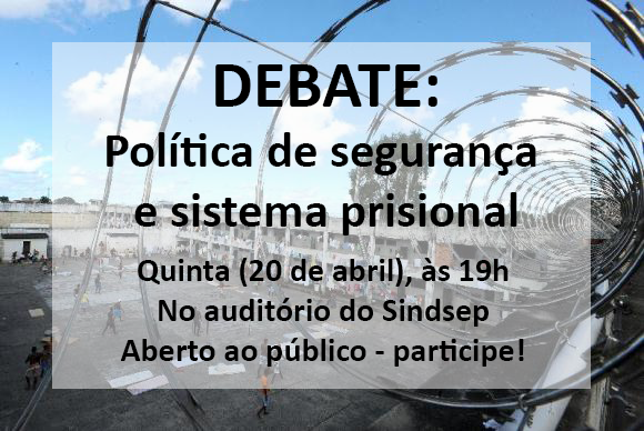 Só no primeiro trimestre do ano, 1522 homicídios em Pernambuco. Um índice de violência muito alto, que não se via no estado há mais de dez anos. O problema é grave e a sociedade não pode ficar de fora dessa discussão. Por isso, o Núcleo de Estudos Política, Economia e Sindicalismo (NEP), realiza nesta quinta-feira, dia 20 de abril, o debate Política de Segurança e Sistema Prisional – O caso de Pernambuco. O evento – aberto ao público – será no auditório do Sindsep, a partir das 19h.