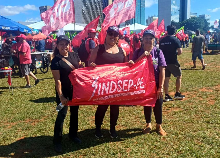 A direção do Sindsep-PE junto com representantes das mais diversas categorias de trabalhadoras e trabalhadores brasileiros tomaram as ruas de Brasília nesta quarta-feira (15) durante a Marcha da Classe Trabalhadora. Foram milhares de pessoas reunidas, inicialmente, na Conferência da Classe Trabalhadora (Conclat) – Empregos, Direitos, Democracia, Soberania e Vida Digna, realizada na concentração da Marcha, que aconteceu no Teatro Nacional.