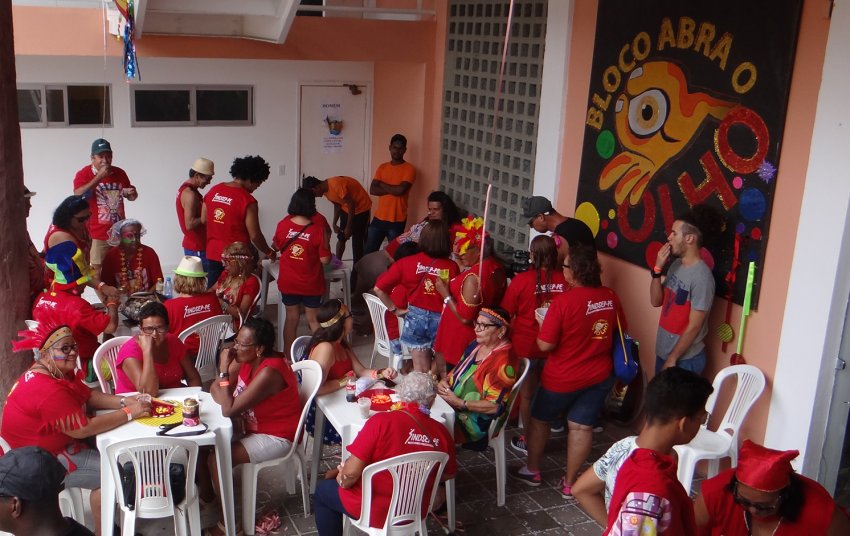 Nem a chuva que se anunciou no início da tarde de hoje, conseguiu esfriar a animação dos foliões. Com suor, alegria e conscientização política, os servidores que participaram do Abra o Olho 2019 caíram no frevo, ao som da Orquestra Universal, que apresentou um repertório eclético do melhor do carnaval. O baile aconteceu na sede do Sindsep, que estava a caráter, com uma decoração que fez jus ao tema: muitas laranjas espalhadas, máscaras alusivas à festa de Momo, serpentinas e o mais importantes: a irreverência e animação do servidor federal.