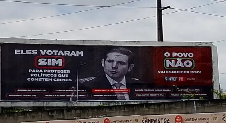 Os outdoors foram espalhados em Campina Grande com a foto de Motta e a seguinte frase: "Eles votaram sim para proteger políticos que cometem crimes", diz a propaganda, nomeando os parlamentares que foram favoráveis à medida.