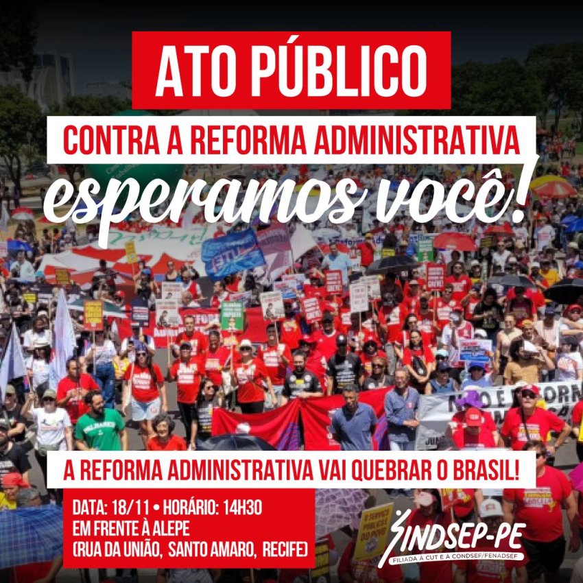O Sindsep-PE irá integrar o ato público contra a Reforma Administrativa, a ser realizado na próxima terça-feira (18), na frente da Assembleia Legislativa de Pernambuco (Alepe).