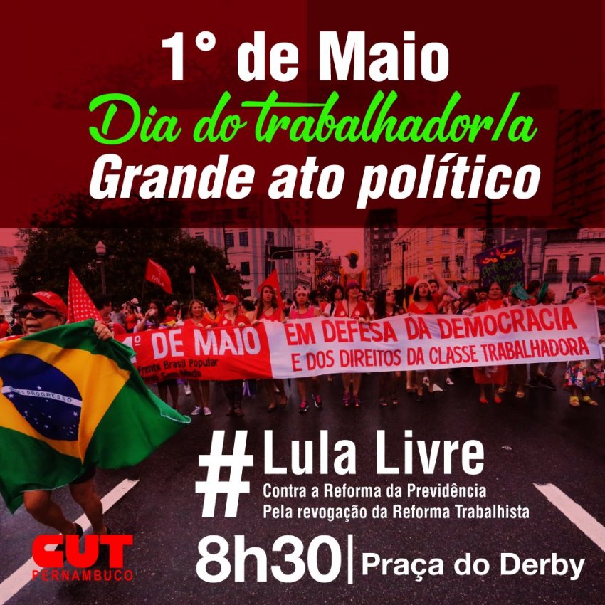 Diante desse cenário, vamos fazer um grande ato público no Recife neste 1º de Maio, com concentração às 8h30, na praça do Derby. Além de defender os direitos dos trabalhadores, vamos cobrar democracia e a liberdade para o ex-presidente Lula. Em nível nacional, o quartel general será Curitiba, quando caravanas de todo o país estarão na capital paranaense para exigir Lula livre.