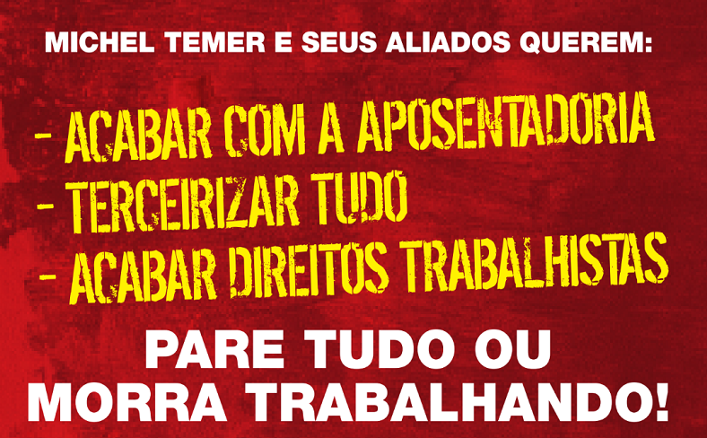 Com as reformas trabalhista e da Previdência prestes a serem aprovadas no Congresso não há tempo a perder. A população deve se mobilizar, ir às ruas e não deixar que essas propostas, altamente prejudiciais à classe trabalhadora, sejam aprovadas. Não tem o que pensar. Nesta sexta, 28 de abril, é greve geral e para tudo. Em Pernambuco, várias categorias já decidiram pela paralisação, como os bancários, metroviários, petroleiros, trabalhadores da educação, entre outros.