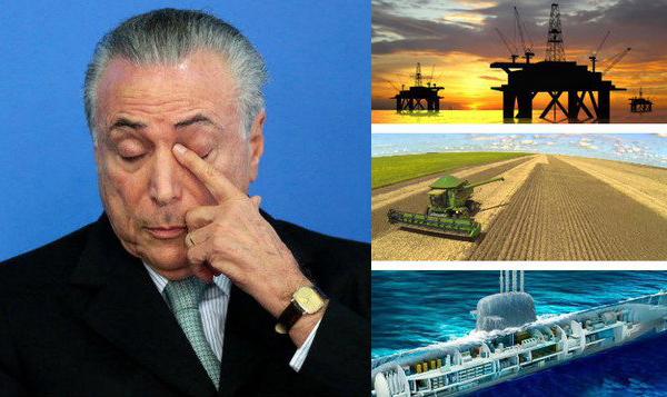 O ataque mais recente se dá no agronegócio, onde Temer pretende permitir, por medida provisória, que estrangeiros tenham até 100 mil hectares no Brasil. No mundo de hoje, terras aráveis são um dos bens mais escassos do planeta e Temer pretende colocar o Brasil em leilão, o que também pressionará o consumo de outros recursos naturais – raros no mundo e a abundantes no Brasil – como a água.
