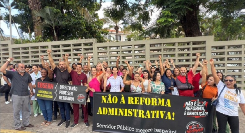 Trabalhadores e trabalhadoras da Ebserh no Maranhão participaram hoje, 10, de uma grande manifestação organizada pelo Sindsep-MA contra a mudança no cálculo da insalubridade e a reforma administrativa.